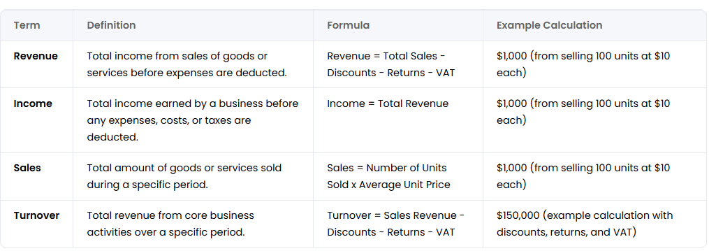 Understanding Revenue, Income, Sales, and Turnover: A Comprehensive Guide for Businesses